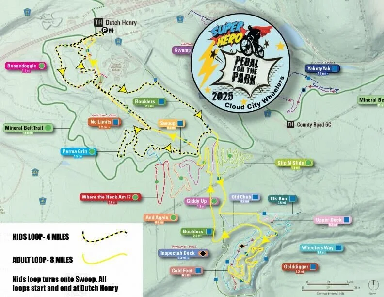 Pedal for the Park is an event we started in 2019 to start raising money for a new bike park in Leadville. From then on, it has become an annual tradition, combining kiddos and adults, biking, and raising money to fund the Huck Finn Bike Park and other important CCW initiatives.